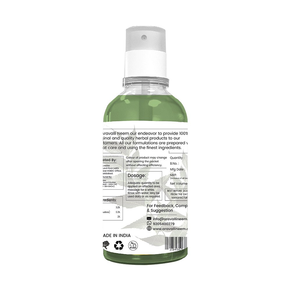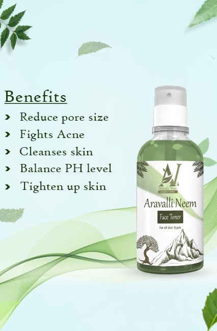 Aravalli Neem toner is A gentle skin soothing formula that clears skin and prevents the recurrence of pimples. Our Aravalli Neem Toner Made from 100% organic neem leaf of Aravalli trees. it Minimizes the look of pores and breakouts while disinfecting and balancing skin. Restores skin's pH balance and provides instant hydration to the skin. Removes excess oil, and dirt from the skin and freshens up the skin. It keeps your face skin healthy and glowing. Every type of skin can apply this toner. No harmful chemicals included, 100% organic neem face toner. Our Aravalli Neem toner is a product of only natural ingredients, processed through eco-friendly measures. Do not spray at eyes and mouth.